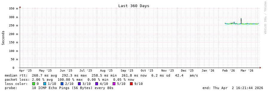 24 > ffm-bb2-link.ip.twelve99.net (62.115.122.139) [AS1299] 261.495ms 261.493ms 261.507ms